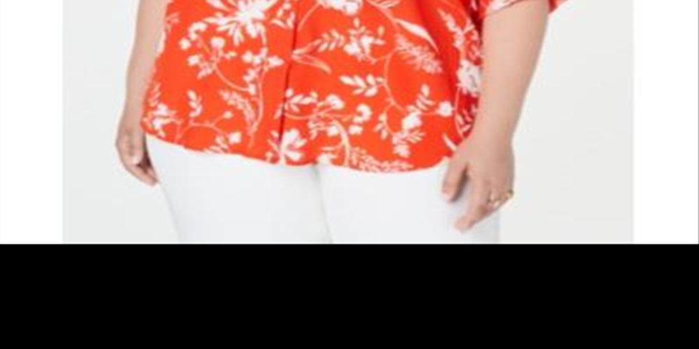 Blusa casual floral plus size Calvin Klein feminina com botões, vermelha, tamanho 1X