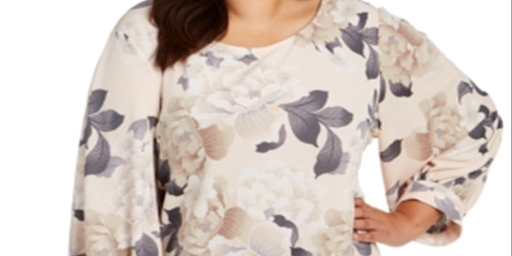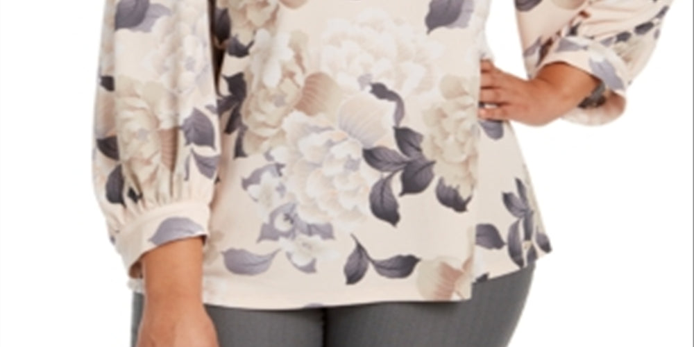 Blusa Calvin Klein Plus Size Feminina Estampa Floral Manga Longa Rosa Tamanho 2X