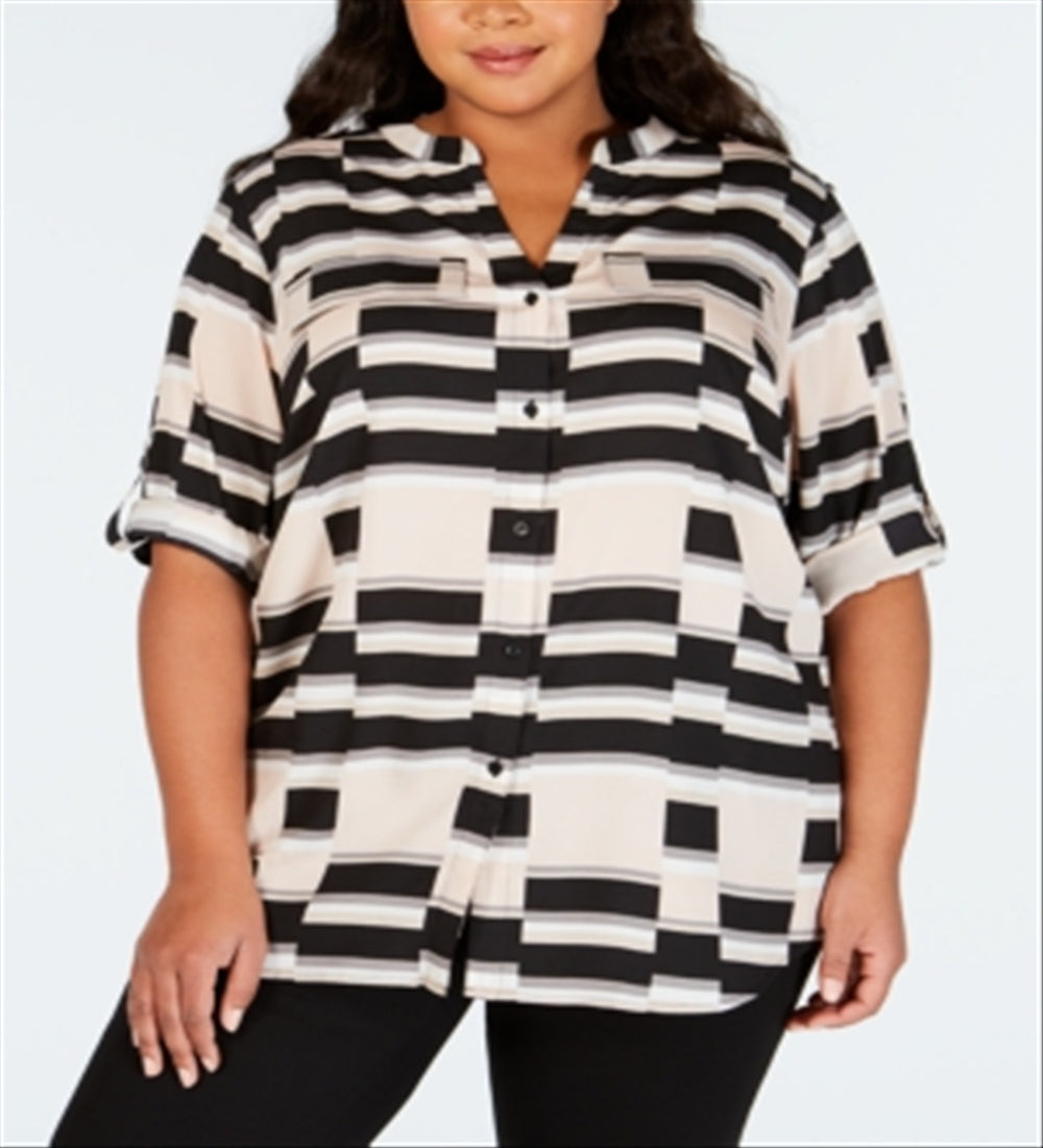 Uma estampa gráfica ousada e um estilo simples fazem do top de botões prático da Calvin Klein um item essencial no guarda-roupa de trabalho