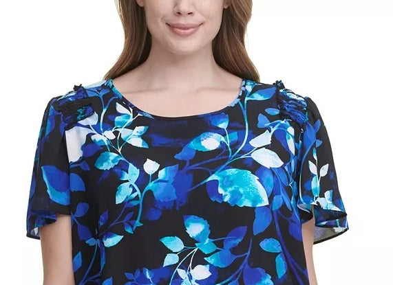 Importado|Decote redondo; abertura nas costas com fecho de botão|Mangas curtas e esvoaçantes|Babado franzido nos ombros|ID da Web: 11753921