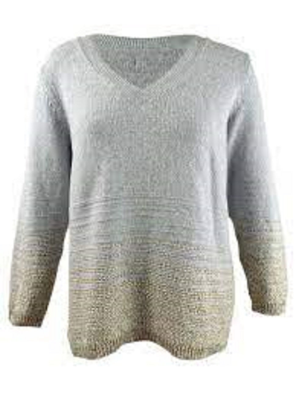 Decote em V | Detalhe texturizado e listrado metálico na bainha | Mangas compridas com punhos listrados metálicos | Algodão/poliéster/acrílico/elastano | Lavar à mão | Importado