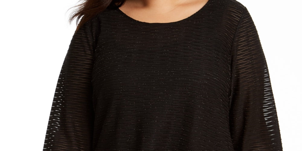 Blusa feminina plus size Calvin Klein de malha ondulada metálica com bainha assimétrica, preta, tamanho 2X