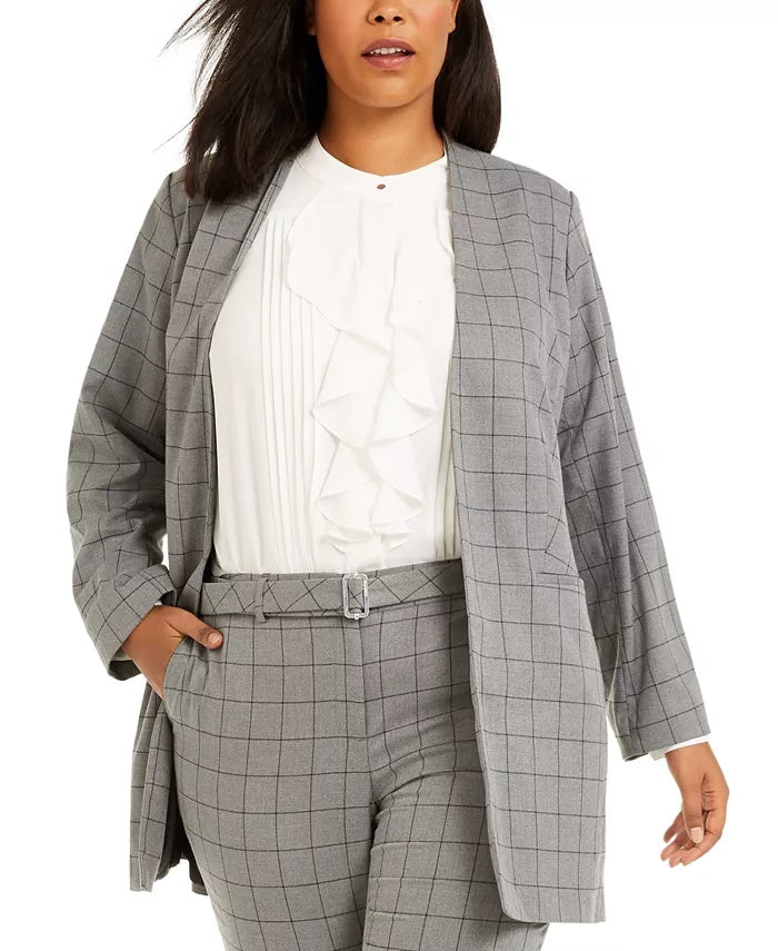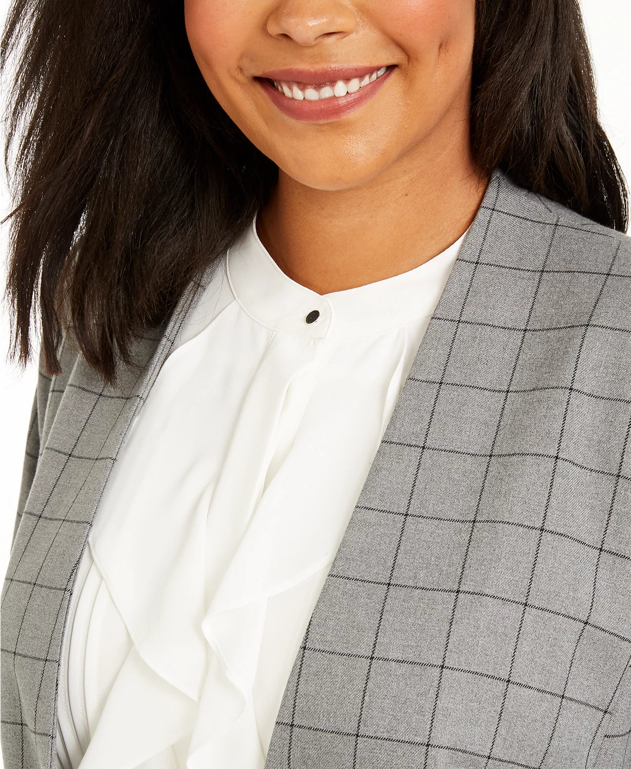 Calvin Klein Jaqueta Feminina Plus Size Windowpane Topper Cinza Tamanho 20W