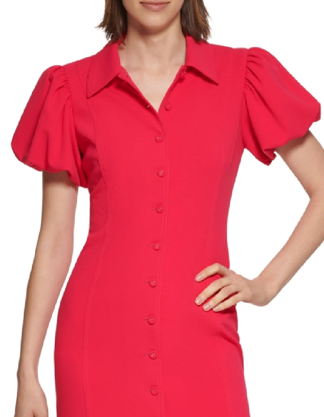 Mangas bufantes charmosas emolduram este vestido-camisa da Calvin Klein | combine-o com saltos para um acabamento profissional chique