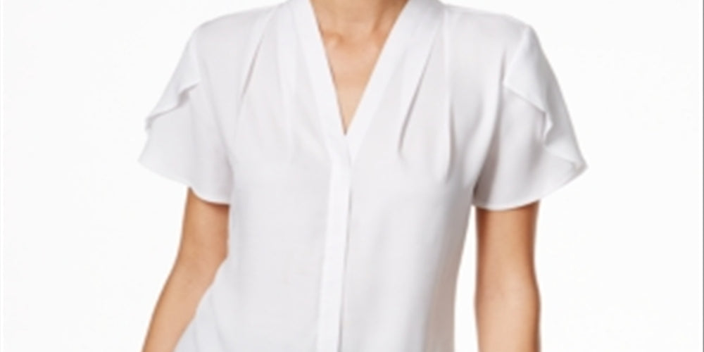 Blusa Calvin Klein Feminina com Babados e Manga Caplet, Branca, Tamanho X-G