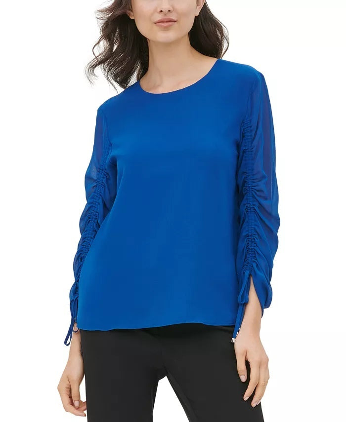 Aproximadamente 63 cm de comprimento | Decote redondo; fecho de pressão e botão nas costas | Cordão franzindo nas mangas | Revestimento e forro: poliéster | Lavável à máquina | Importado