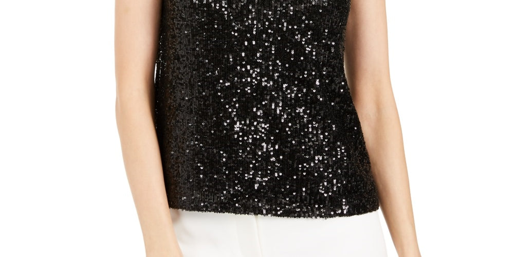 Decote falso com abertura; fecho de botão nas costas com abertura | Lantejoulas por toda a peça | Exterior; poliéster/elastano; forro; poliéster | Lavagem a seco | Importado