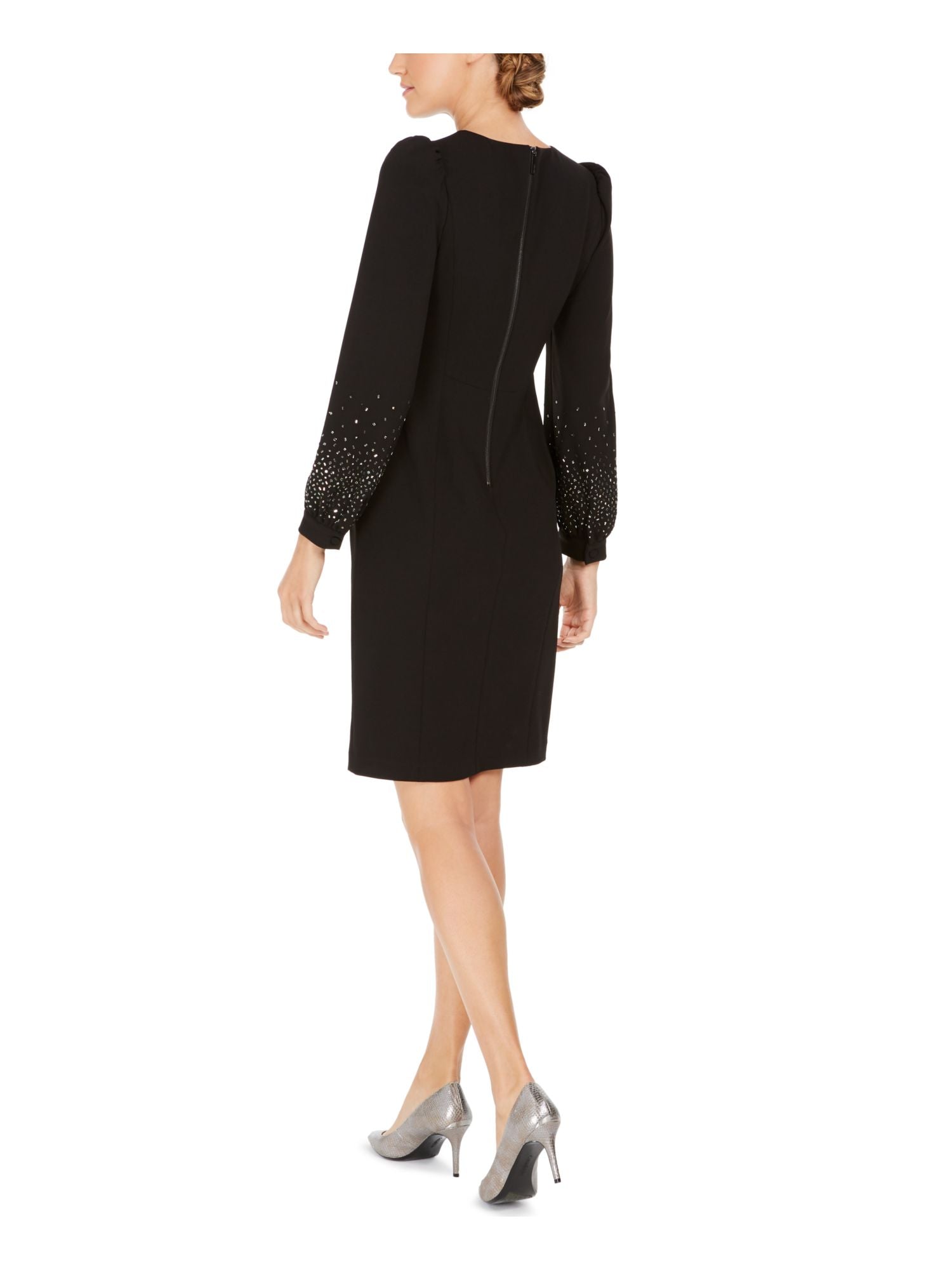 Vestido Calvin Klein Feminino Bainha Ombros Bufantes Enfeitado Preto Tamanho 10