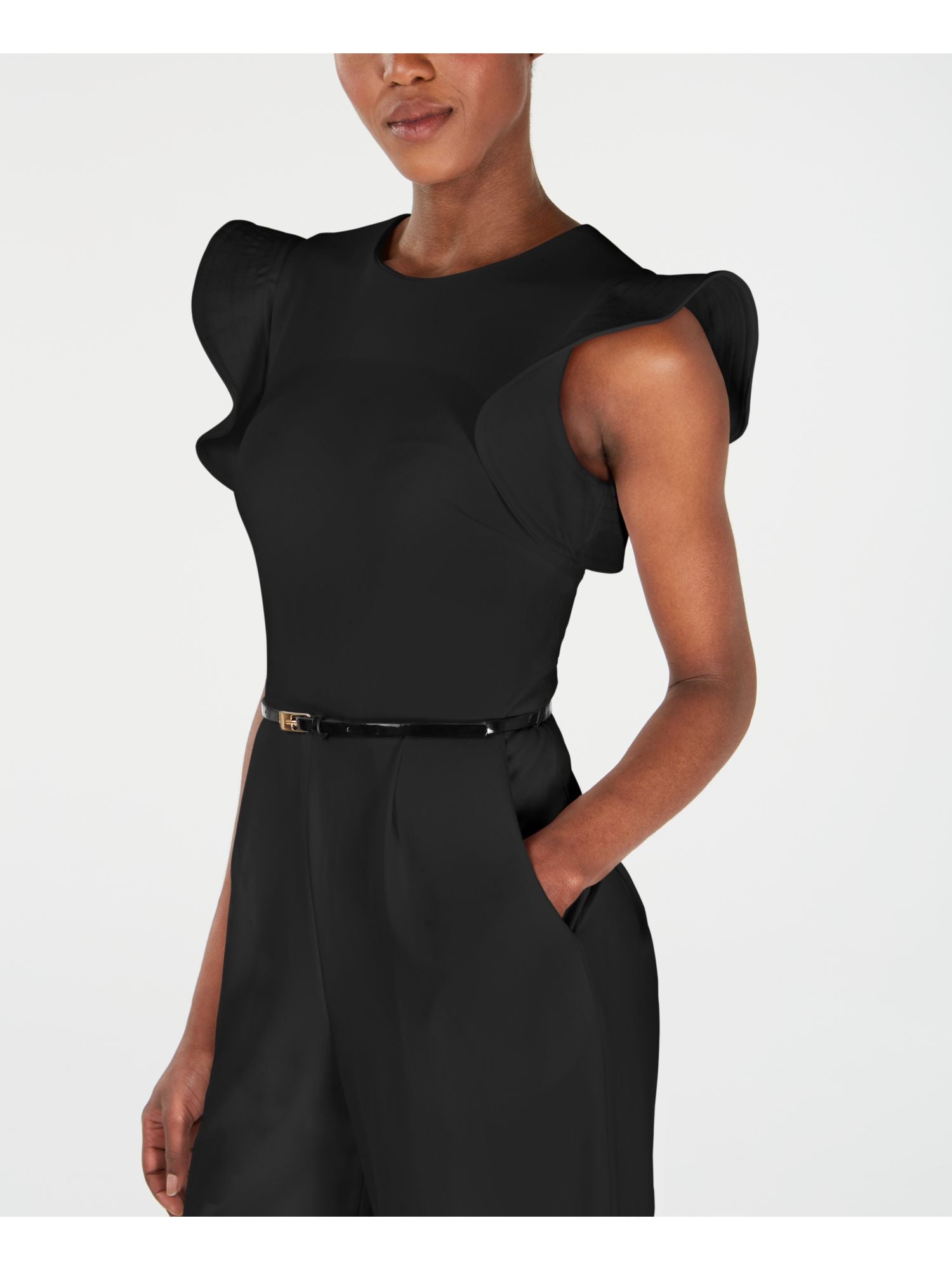 calvin klein|estilo; macacão|ocasião; noite|tamanho; 4|material; poliéster|cor; preto|colarinho de joias