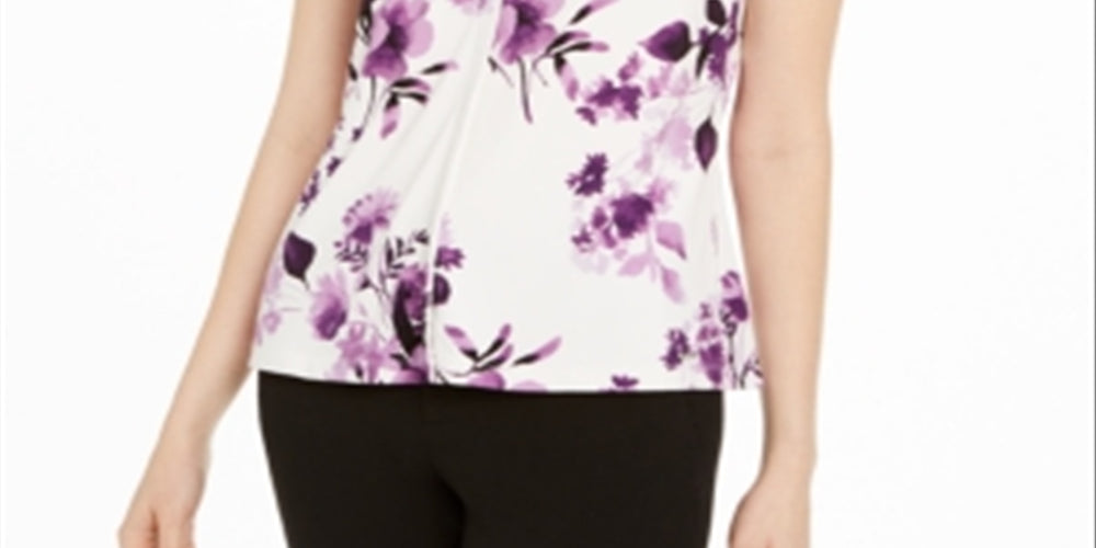 blusa plissada floral sem mangas calvin klein feminina roupas femininas - tops