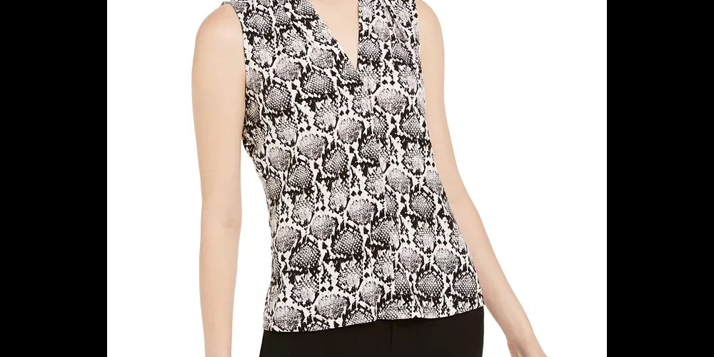 Blusa feminina sem mangas com estampa de pele de cobra Calvin Klein, tamanho médio, cor carvão