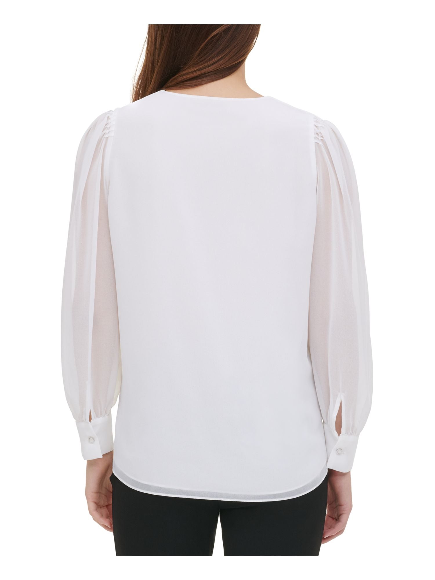 Blusa Calvin Klein Feminina Lisa Manga Longa Gola V Branca Tamanho Grande