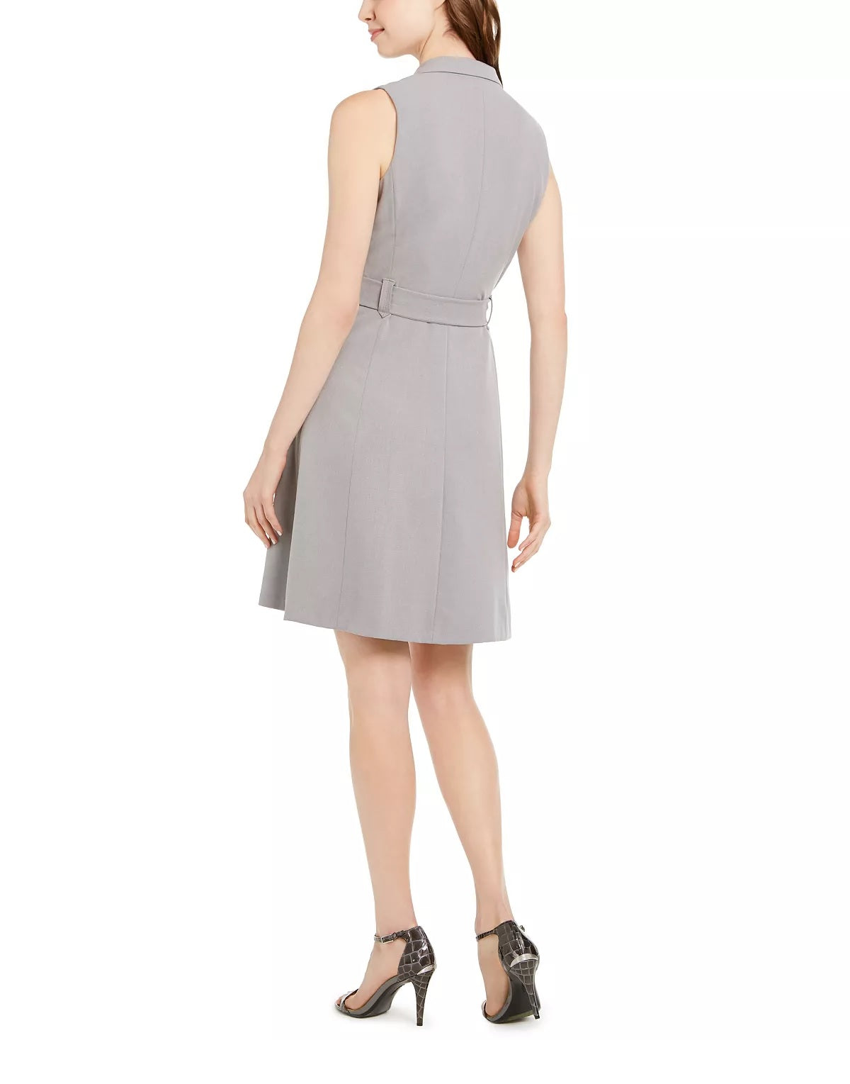 Aproximadamente 37-1/2 de comprimento, do centro do pescoço até a bainha. O comprimento é baseado no tamanho 6 e varia 1/4 entre os tamanhos. | Decote chanfrado; silhueta ajustada e ampla | Zíper superior aberto na parte interna da saia | Cintura com cinto | Exterior; poliéster/rayon/elastano; forro; poliéster
