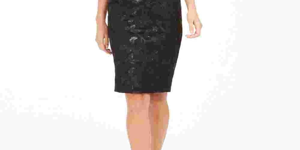 Aproximadamente 40-3/4" de comprimento do centro do pescoço até a bainha | Decote quadrado; Silhueta justa | Fecho de zíper nas costas | Poliéster/elastano; forro: poliéster | Lavagem a seco