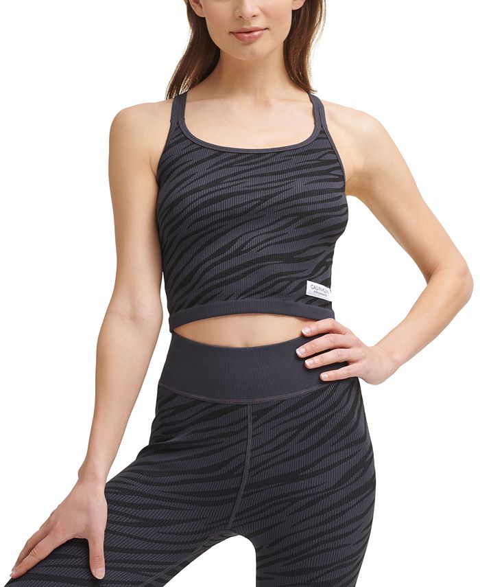 Perfeita para atividades de baixo impacto, como ioga | esta regata sem costura da Calvin Klein Performance é uma escolha curta com uma divertida estampa de zebra. | Regata de baixo impacto ideal para ioga | Pilates ou relaxamento | Importado | Decote redondo; texturizado por toda parte; design sem costura; costas com alças |