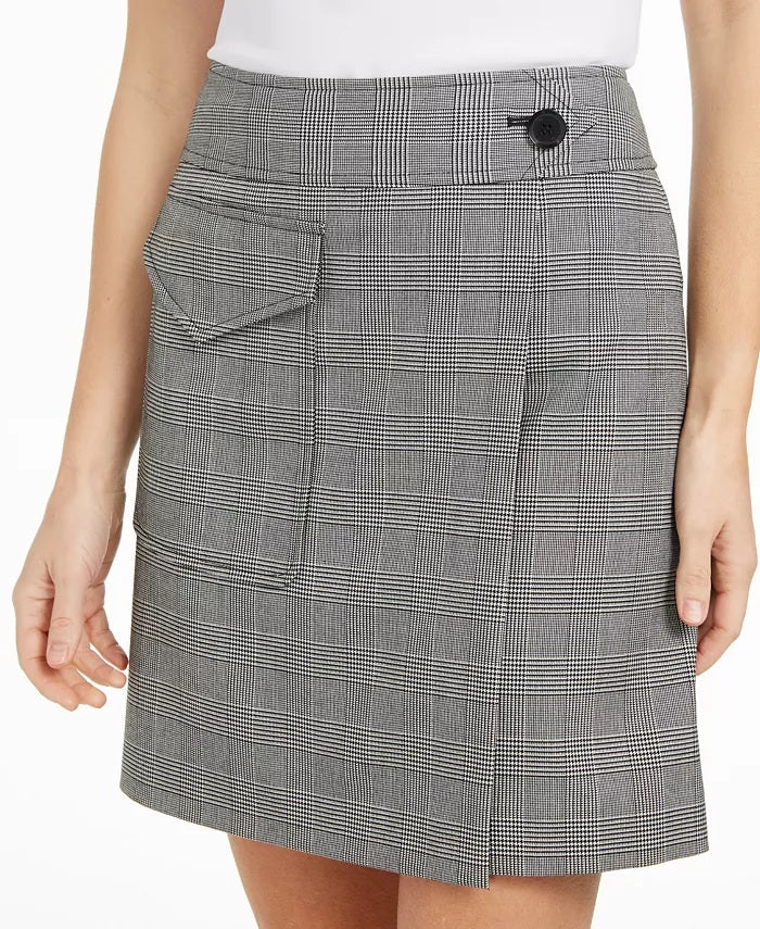 Calvin Klein X-Fit Slim Fit Saia Xadrez Faux Wrap Feminina Carvão Tamanho 2