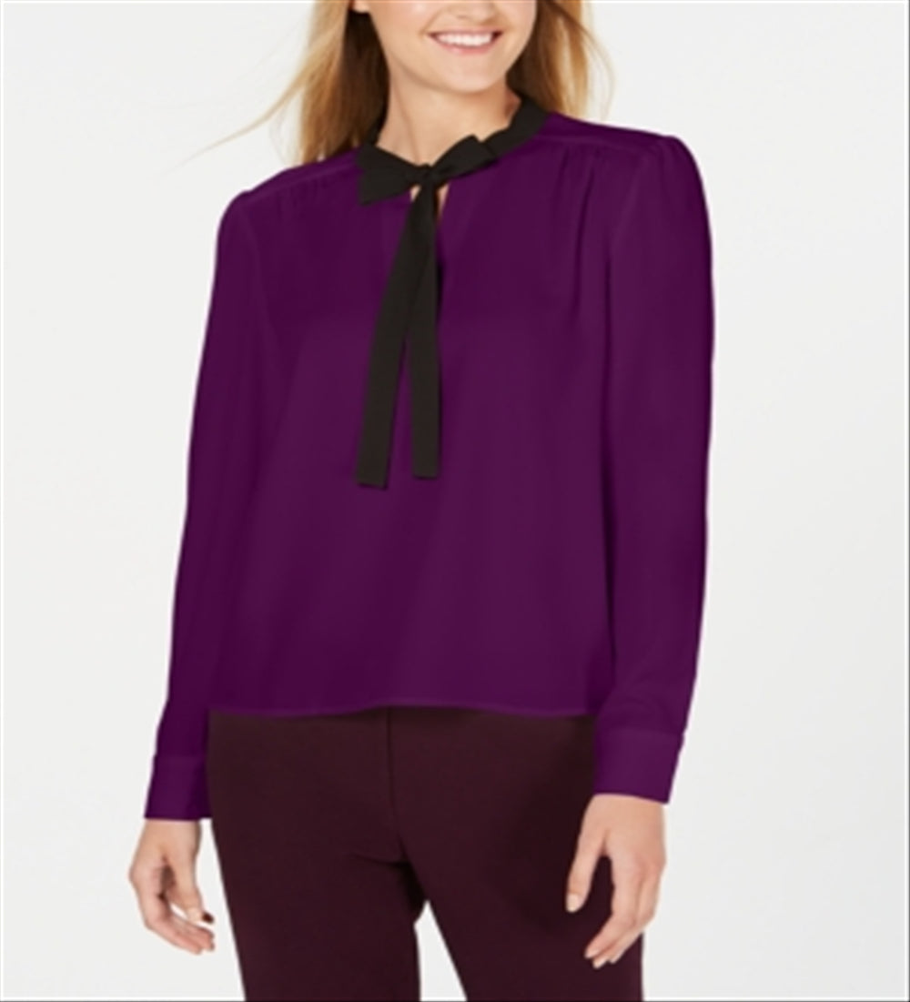 Uma gravata contrastante no decote dá um acabamento elegante a este sofisticado top pequeno da Calvin Klein | finalizado com mangas longas com punho. | Ajusta-se aos quadris | Projetado para se ajustar e valorizar pessoas de 1,62 m ou menos | Decote aberto com fecho de amarração | Manga longa | Poliéster/elastano