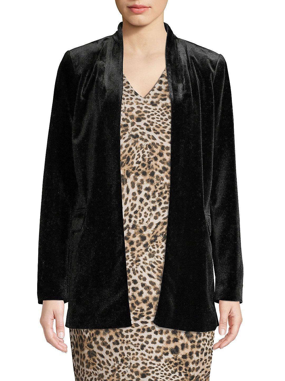 Jaqueta de veludo feminina com frente aberta, preta, tamanho 0