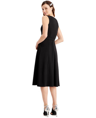 Vestido Calvin Klein Feminino com Cinto e Ombros Enfeitados, Preto, Tamanho 8