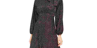 Vestido Calvin Klein Feminino Jacquard com Decote Amarrado e Bolinhas, Preto, Tamanho 12