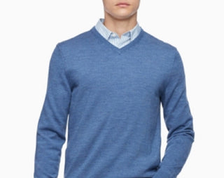 Calvin Klein Suéter Masculino de Lã Merino com Gola V Azul Tamanho XS