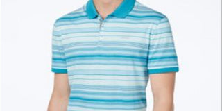 Camisa Polo Masculina Calvin Klein Classic Fit Listrada de Algodão Líquido Azul Tamanho 2XL