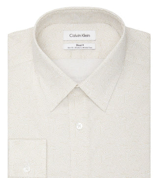 Camisa social masculina Calvin Klein Regular Fit Allover Print Performance Stretch, branca/rosa, tamanho 15x34x35