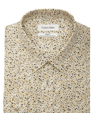 Camisa social Calvin Klein masculina com ajuste slim e stretch, bege, tamanho 14,5 x 32 x 33