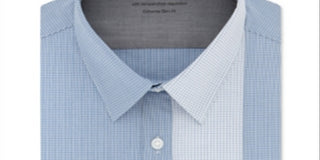 Camisa social masculina Calvin Klein Extra Slim Fit com regulagem de temperatura elástica xadrez, azul, tamanho P 14-14/5