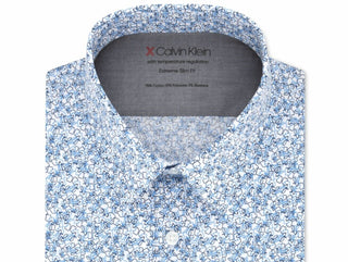 Camisa social masculina Calvin Klein X Extra-Slim Fit com estampa térmica elástica e desempenho, tamanho azul, 15x32-35