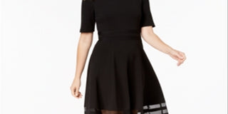 Vestido Calvin Klein Feminino Manga Cotovelo com Detalhe de Ilusão Preto Tamanho 6 Petite