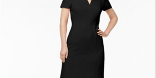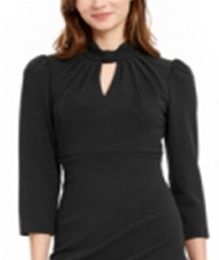 Vestido de coquetel Calvin Klein feminino com zíper e manga 3/4, decote em V e bainha acima do joelho, preto, tamanho 2