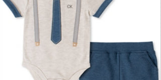 Conjunto Calvin Klein Baby Boy 2 peças gravata e suspensório body e calça jogger cinza tamanho 3-6 meses