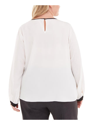 Blusa plissada transparente Calvin Klein Plus Size Feminina, branca, tamanho 1X