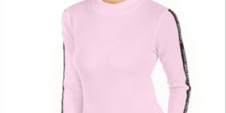 Camiseta Calvin Klein Feminina Performance Logo Listrada Gola Mock Rosa Tamanho XS