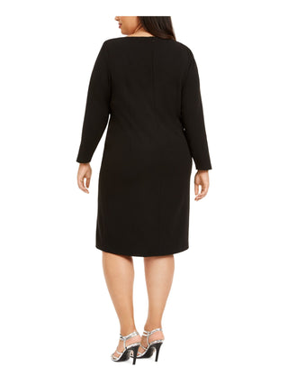 Vestido Calvin Klein Feminino Manga Longa Decote Joia Com Fenda E Decote Abaixo Do Joelho Para Usar No Trabalho Preto Tamanho 16W