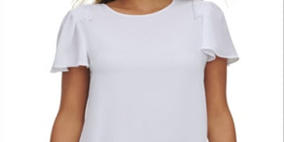 Blusa Calvin Klein Feminina Manga Curta Babados Branca Tamanho X-G