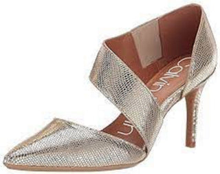 Calvin Klein Gella Couro Feminino Bico Fino Ankle Wrap Scarpin Clássico Amarelo Tamanho 10 M