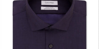 Camisa social Calvin Klein masculina Steel Extra Slim Fit, sem passar, com padrão espinha de peixe, roxa, tamanho 16x34-35