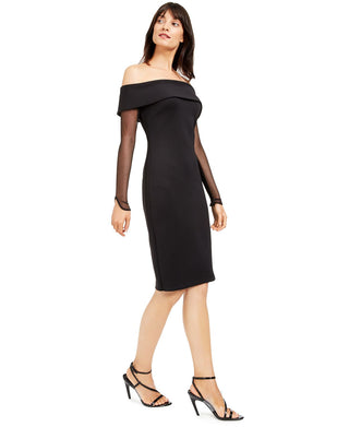 Vestido Calvin Klein Feminino Ombro a Ombro Manga Ilusão Preto Tamanho 12