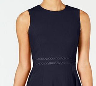 Vestido de coquetel Calvin Klein feminino sem mangas, gola alta, acima do joelho, tamanho 8, azul, pequeno