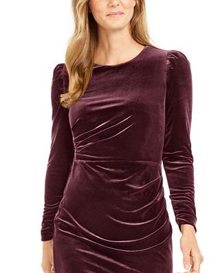 Vestido de festa Calvin Klein feminino, manga longa, gola alta, comprimento até o joelho, roxo, tamanho 6