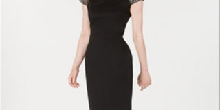 Vestido justo de veludo com lantejoulas Calvin Klein feminino, preto, tamanho 4