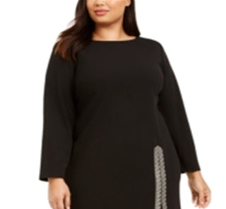 Vestido Calvin Klein Feminino Plus Size Bainha com Fenda Brilhante Preto Tamanho 20W