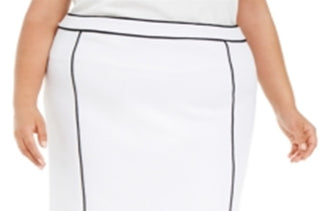 Saia lápis Calvin Klein feminina plus size com debrum contrastante, branca, tamanho 20W