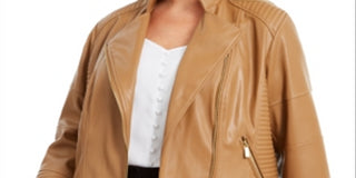 Jaqueta de couro sintético SeaFaux da Calvin Klein para mulheres, marrom, tamanho 0X