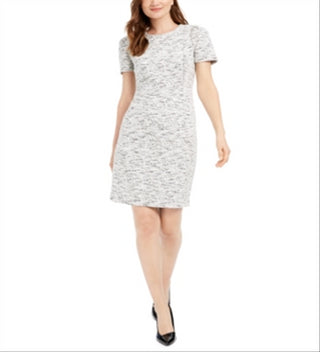 Vestido justo de tweed feminino Calvin Klein, branco, tamanho 10 P