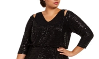 Vestido longo feminino Calvin Klein com manga 3/4, preto, tamanho 24W