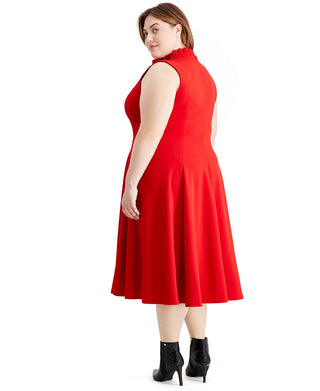 Vestido Calvin Klein Feminino Plus Size com Babados, Gola V, Sem Mangas, Vermelho, Tamanho 22W