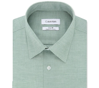 Camisa social masculina Calvin Klein Steel Classic/Regular, elástica, sem necessidade de passar, verde, tamanho 34-35